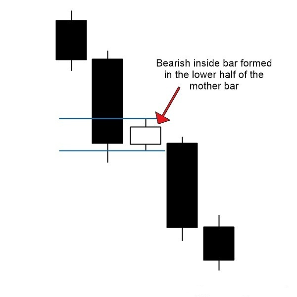 The only thing that matters is whether the mother bar is bullish or bearish. The formation of the mother bar, in combination with the trend, is what tells you which way to trade an inside bar setup.